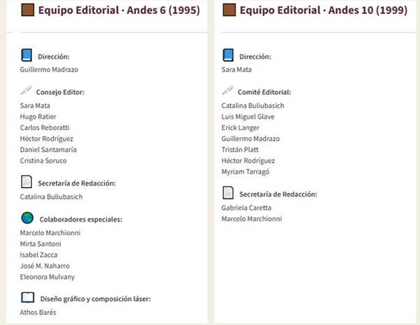 equipo de Andes estuvo conformado por un director, un consejo editor, una