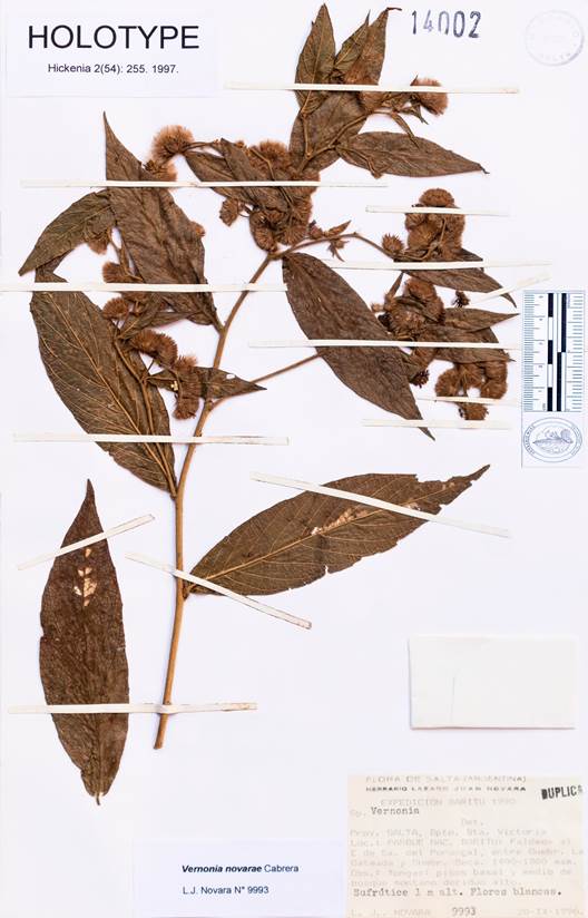 Ref.: Cabrera, A. L. (1997). Una nueva especie de Vernonia (Compositae) del este de Salta, Argentina. Hickenia 2, 255-256.