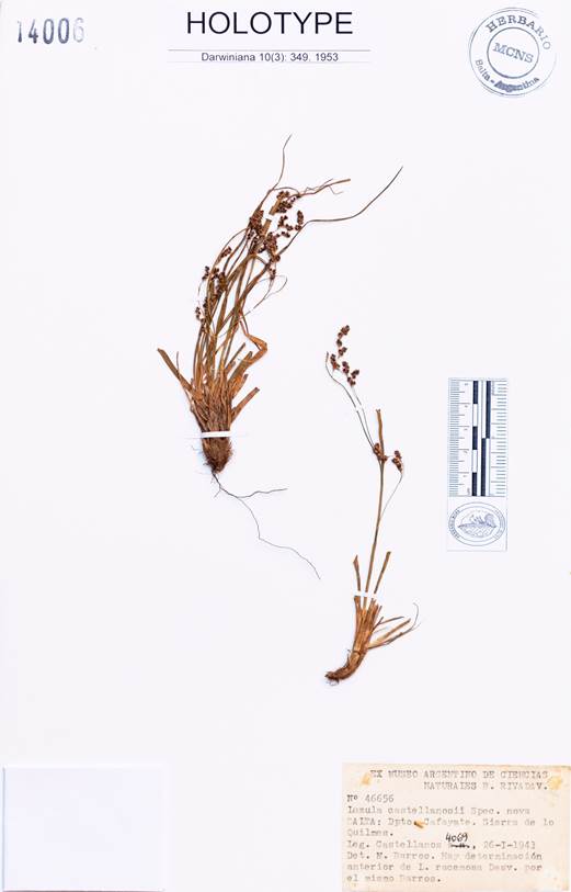 Ref.: Barros, M. (1953) Las Juncáceas de Argentina, Chile y Uruguay. Darwiniana 10(3), 279-460.